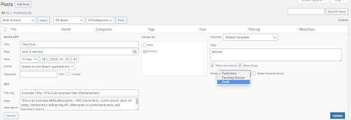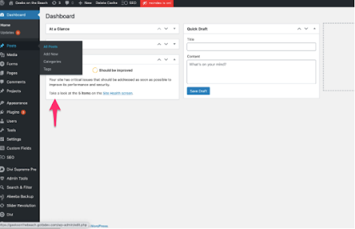 - Navigate to Posts in your dashboard and select All Posts (See 3) a) 1.)