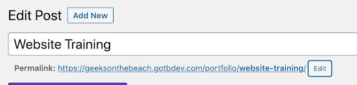 When writing your slug, ensure that you use only lower-case letters and fill any gaps with a hyphen: e.g. “website-training” rather than “Website Training”